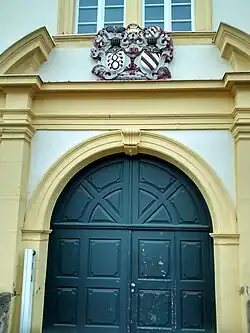 Torzugang zum Schlosshof mit kleinem Allianzwappen -