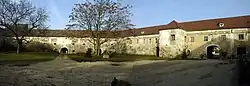 Dem Schloss ist westlich ein weiträumiger dreiflügeliger Wirtschaftshof mit ein- bis zweigeschoßigen Trakten vorgelagert. Die Gebäude sind im Kern überwiegend aus der zweiten Hälfte des 16. und dem Beginn des 17. Jahrhunderts.