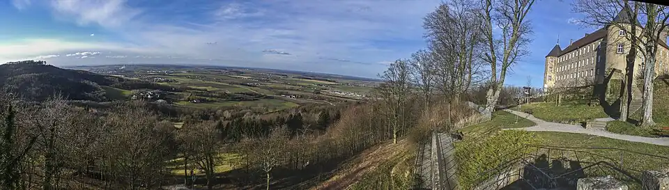 Schloss Waldenburg liegt am Rand der Stadt Waldenburg auf einem Bergsporn, der sich über die Hohenloher Ebene erhebt. Der teils als Renaissanceschloss ausgeführte Bau befindet sich im Besitz des Hauses Hohenlohe-Waldenburg-Schillingsfürst.