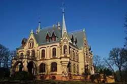 Das Schloss wurde im Auftrag von Heinrich Heimann im Stil der Gründerjahre erbaut. Ab 1911 war Emil Pyrkosch Eigentümer, der 1932 den Besitz an eine nordrhein-westfälische Siedlungsgemeinschaft verkaufte.
