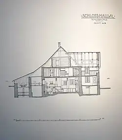 - ↑ Pl.95 Schnitt A-B. C-D. Herzog. Nils Lithberg und Anders Roland: Schloss Hallwil, Band 5, Der Baubestand im Bilde. (Siehe Literatur zweite Quelle)
