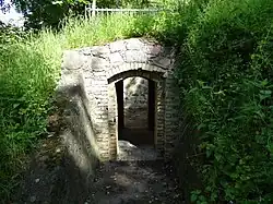 Im nordwestlichen Teil des Gartens befindet sich eine Ruine eines Eiskellers. Dies ist das einzige Gebäude, welches von der ehemaligen Schlossanlage noch erhalten ist. Er entstand um 1890 und diente als Lagerraum für Eis in den Sommermonaten. Im Winter entnahm man mit Sägen große Blöcke Eis aus dem Schermützelsee. Mit Hilfe eines Fuhrwerks oder eines Schlittens brachte man diese zum Eiskeller und lagerte sie dort vermutlich auf Holzrosten ein. In der Mitte des kreisförmigen Kellers befand sich eine Ablaufrinne für Schmelzwasser. Die Kapazität soll für den Eisbedarf von zwei Jahren ausgereicht haben, da man nicht sicher sein konnte, dass es in jedem Winter hinreichend kalt wurde, um Eis auszubilden. Das Dach ist heute nicht mehr vorhanden; ein umlaufendes Gitter am oberen Teil wurde erst zu einem späteren Zeitpunkt als Schutz für die Besucher angebracht.