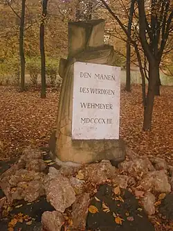 - Wehmeyer-Denkmal: Am Südrand des Parkes ließ Herzog Friedrich IV. von Sachsen-Gotha-Altenburg 1813 für seinen verstorbenen Oberhofgärtner Christian Heinrich Wehmeyer einen Gedenkstein errichten. Der aus Stein gehauene Baumstumpf trägt eine Marmortafel mit der Inschrift: Den Manen des wuerdigen Wehmeyer MDCCCXIII.