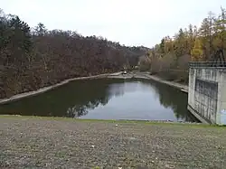 Die Gegend verfügt über einige interessante Aufschlüsse. Ein Profil durch das Proterozoikum aus einem aufgelassenen Steinbruch östlich des Rückhaltebeckens im Ostteil zeigt grau-grünliche Grauwacke, Tonschiefer und Schluffstein. Einen halben Kilometer flussabwärts sind Dobříšských-Konglomerate zu finden. Weitere 200 Meter westlich befindet sich ein Steinbruch aus Schluffstein. Ein dritter Steinbruch in diesem Bereich lässt eine auffällige Faltung (Štěchovických und Schluffstein) erkennen. Daneben treten einige Quarzgänge sowie rostfarbige Rückstände von Limonit auf. Noch weiter flussabwärts liegt die wenig aufgeschlossene Závitskému-Umlagerung.[4][2]