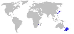Das Verbreitungsgebiet dieser Art umfasst die Küstengebiete des westlichen Pazifik, wo sie vor den Küsten von Japan und Taiwan sowie an den Küsten Australiens und Neuseelands vorkommt. Unsichere Nachweise stammen aus dem westlichen Indischen Ozean vor der Küste von Mosambik.[2] Sie lebt meist in Bodennähe und kommt in Tiefen von etwa 240 bis 655 Metern vor.[2]