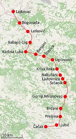 - ↑ Fahrplan Lajkovac–Gornji Milanovac–Čačak