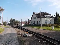 Das heutige Empfangsgebäude wurde 1912 erbaut. Ungewöhnlich für einen Schmalspurbahnhof ist sowohl der lange Bahnsteig als auch die 1913 gebaute Unterführung zum Bahnsteig.