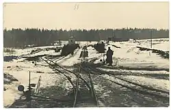 Strecke Lassen-Bewern (Laši-Bebrene) | Feldbahn im Schnee im Winter 1916–1917.[8] |