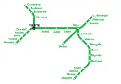 - ↑ Nereta–Panemunis–Pandėlys–Skapiškis (41 km langer Fußweg entlang der Strecke).