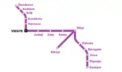 - ↑ a b c Toms Altbergs et al: Viesīte - galvenā Latvijas šaursliežu dzelzceļu stacija. (YouTube-Film, 5. Februar 2021).