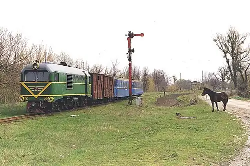 ![]() Zug bei der Ausfahrt in Rudnyzja | |||||||||||||||||||||||||||||||||||||||||||||||||||||||||||||||||||||||||||||||||||||||||||||||||||||||||||||||||||||||||||||||||||||||||||||||||||||||||||||||||||||||||||||||||||||||||||||||||||||||||||||||||||||||||||||||||||||||||||||||||||||||||||||||||||||