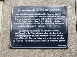 - ↑ Bezirksvorstehung Mariahilf: Neue Gedenktafel für zerstörte Synagoge ( vom 24. Oktober 2010 im Internet Archive)