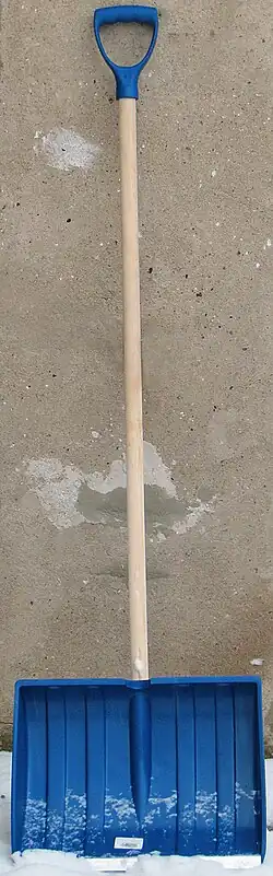 Schneeschaufeln sind aus leichtem Material gefertigt, um die Arbeit zu erleichtern. Der Stiel besteht in der Regel aus bruchfestem Laubholz, der Schild ist wegen der Verschleißfestigkeit meist mit einer Bodenkante aus widerstandsfähigerem Metall versehen.