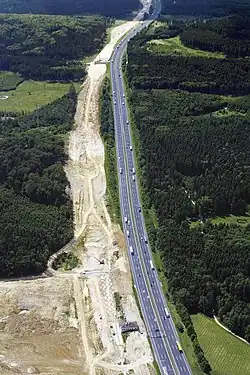 Der Achsabstand zu der zwischen Kilometer 13 und 48 parallel laufenden Autobahn liegt zwischen 40 und 60 Metern.[15]