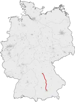 1867 wurde die Bahnstrecke München–Ingolstadt eröffnet und 1870 nach Treuchtlingen verlängert. Zwischen 1870 und 1906 nutzten Fernzüge zwischen München und Nürnberg (nun insgesamt 198 Kilometer)[20] diese Strecken.[18] Mit Inbetriebnahme der Bahnstrecke Donauwörth–Treuchtlingen wurde die Relation zwischen Nürnberg und Augsburg 1906 auf 137 Kilometer verkürzt, zwischen Nürnberg und München auf 199 km. Nach dieser Verkürzung wurde Augsburg wieder in den Nord-Süd-Verkehr einbezogen.[18]
