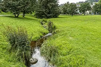 ![]() Der Obertalbach, der Hauptquellbach der Schonach, im Kurpark von Schonach | ||
