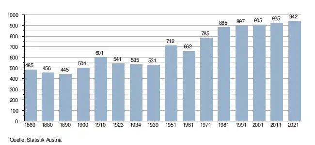 - ↑ Statistik Austria – Bevölkerung zu Jahresbeginn nach administrativen Gebietseinheiten (Bundesländer, NUTS-Regionen, Bezirke, Gemeinden) seit 2002 (ODS)