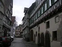- ↑ Urkunde aus 1299: früheste Erwähnung von Stadtmauern und Gericht in Schorndorf