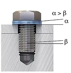 - Verhindert die Lockerung der Verbindung durch Absinken der Vorspannkraft aufgrund von (geringen) Relativbewegungen der Bauteile