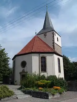 Die evangelische Kirche wurde in den Jahren 1614 bis 1618 erbaut. Der Innenraum ist mit einem schwarzweißen und dreidimensional wirkenden Roll- und Beschlagwerk aus der Renaissancezeit ausgemalt. Dabei handelt es sich in großen Teilen um die ursprüngliche Ausmalung, die bei einer Innenrenovierung 1961/1962 wieder freigelegt, teilweise auch ergänzt und rekonstruiert wurde.