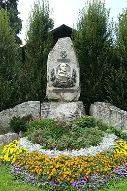 - Denkmal für Landammann Batlogg: Der Montafoner Johann Josef Batlogg (1751–1800) war Landammann, Richter und Landesverteidiger. Ab 1794 wurden die kriegerischen Auseinandersetzungen, hervorgebracht durch die Französische Revolution, auch in Vorarlberg spürbar. 1799 verteidigte Batlogg erfolgreich Vorarlberg und das Montafon gegen die Franzosen, die aus der Schweiz herüber drängten.[17][18] Im Winter 1907 wurde dieses Denkmal mit Natursteinen und einem Relief aus Carrara-Marmor nach einem Entwurf des Künstlers Jakob Bertle aufgestellt. In Schruns sind noch die Batloggstraße und die Batlogghalle (heute „Kulturbühne“) nach dem Freiheitskämpfer benannt. Im II. Weltkrieg benutzte das NS-Regime das Denkmal durch Kreuzsteckungen davor zum „Heldengedenken“ für die Gefallenen aus Schruns.