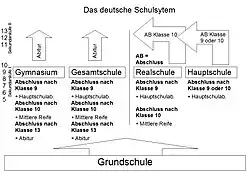 Nach dem Mauerfall wurde das mehrgliedrige Schulsystem der BRD übernommen,[1][12] das Abitur nach zwölf Jahren jedoch teilweise beibehalten.