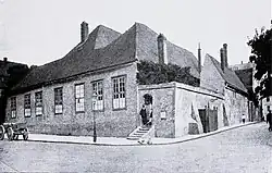 In gesonderten Gebäuden befanden sich die Turnhalle und die Aborte für beide Schulen.