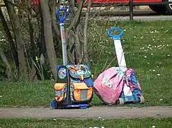 Für Kinder, die sehr zierlich gebaut sind oder bei denen Grunderkrankungen oder Haltungsschäden bestehen, kann ein Schulranzen mit Rädern (Trolley) eine Alternative sein.[12] Allerdings werden Trolleys von Medizinern und Sportwissenschaftlern nicht als vollwertige Alternative zum Schulranzen gesehen, da ihnen eine Reihe medizinischer und bewegungspädagogischer Nachteile zugesprochen wird.[13]