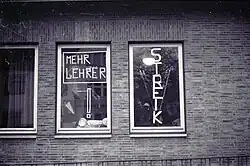 Vermehrt kam es zwischen 1966 und 1976 global zu einer Reihe von Bewegungen von streikenden Schulkindern. In den USA von Schwarzen Schulkindern besonders ab 1966,[18] von Chicano-Schulkindern ab 1968,[19] oder nach dem Kent-State-Massaker 1970. Ab 1967 kam es an Turiner Schulen zu Schulstreiks, die sich in den folgenden Jahren mit den Streiks der Studierenden und der Belegschaft der FIAT-Werke zur Autonomia zusammenschließen.[20]