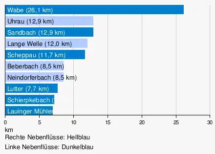 Die Gewässerkennzahlen sind dem Gewässernetz des NLWKN mit Stand 2023 entnommen.[7] In Klammern der Ort der Mündung in die Schunter.