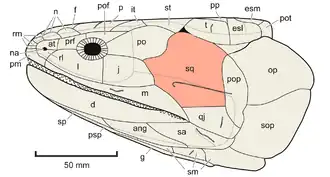 Im Grundbauplan des Amniotenschädels steht es mit dem Scheitelbein (Parietale) in Kontakt. Im Grundbauplan des Schädels diapsider Reptilien ist das Schuppenbein zusammen mit dem Postorbitale am oberen Temporalbogen, dem Knochensteg zwischen unterem und oberem Schläfenfenster, beteiligt.