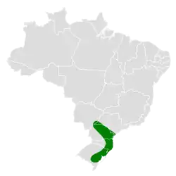 Der Vogel ist endemisch im Osten Brasiliens entlang der Küste (Paraná, Santa Catarina und Rio Grande do Sul).