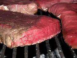 Kohlenmonoxid bewirkt bei rotem Fleisch eine kirschrote Farbe, ohne dass hohe Mengen Sauerstoff in der Verpackung eingesetzt werden. Mit Sauerstoff behandeltes Fleisch zeigt durch die Bildung von Oxymyoglobin eine hellrote Farbe, während bei Zugabe von Kohlenmonoxid das etwas dunklere Carboxymyoglobin entsteht.[14]