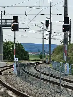 zur Kennzeichnung des Endes eines Einfahrtgleises verwendet.
