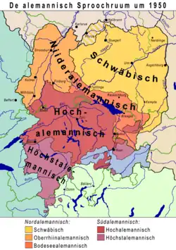 Bodenseealemannisch wird südlich, Schwäbisch nördlich des Höchsten gesprochen.[1] Die Grenze ist aber eher als eine Übergangszone zu verstehen.