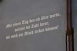 Bei der alljährlich zu den Jahrgangsfesten auf dem Schwäbisch Gmünder Marktplatz von den Gmünder Jubilaren gesungenen Hymne, dem „Alois“, lautet die dritte Strophe: „Leck mi am Arsch, Alois.“