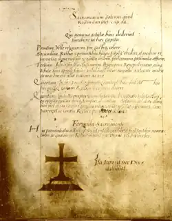 Ein Schwörkreuz oder Schwurkreuz ist entweder ein Kruzifix in einem Sitzungssaal oder ein Kreuz in einem Statutenbuch, auf das bei Vereidigungen der Daumen aufgelegt wurde.[1][2]