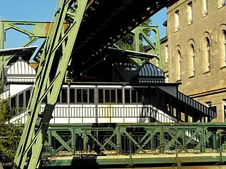 Die Schwebebahnstation Landgericht ist eine von drei Stationen (die anderen beiden sind Völklinger Straße und Werther Brücke), die originalgetreu wieder im Jugendstil aufgebaut wurde. Der Umbau begann im Oktober 2010 und dauerte bis Juni 2011 (Neueröffnung am 20. Juni 2011).[1] Wie die meisten Barmer Stationen besitzt sie kein Satteldach, sondern nur eine Überdachung der Bahnsteige.