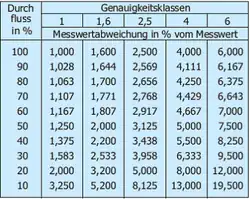 Schwebekörper-Durchflussmesser haben allgemein eine Messbereichsbreite von 1:10. Die Genauigkeit für Schwebekörper-Durchflussmesser wird nach der VDI/VDE-Richtlinie 3513 Bl. 2 durch verschiedene Genauigkeitsklassen definiert. Jeder Fehlerbereich ist einer Genauigkeitsklasse zugeordnet. Die Richtlinie beschreibt auch das Berechnungsverfahren für Schwebekörper. Das Verfahren erlaubt die Umrechnung für die Auslegung eines Geräts oder die Anpassung auf neue oder geänderte Betriebsdaten.