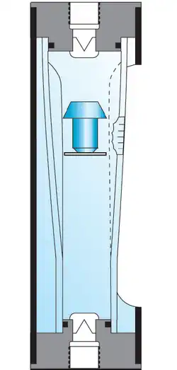 - Nur für senkrechten Einbau mit einer Strömung von unten nach oben, was allerdings heute mit einem Federwiderstand geregelt wird.