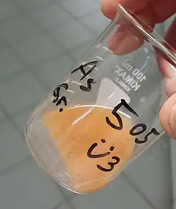 - Antimon(III)-sulfid – Sb2S3, braunorange