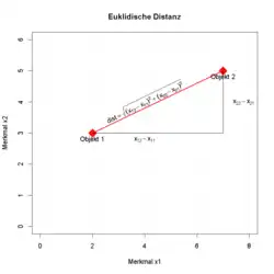 Die automatische Überwachung durch Computer kann nur mit formaler Gleichheit oder Ähnlichkeit arbeiten. Dabei wird Gleichheit oder Ähnlichkeit durch Distanzen im Merkmalsraum ausgedrückt. Befindet sich ein Objekt (oder eine Klasse) zum anderen innerhalb eines definierten Abstandes kann es als gleich angesehen werden. Da die Merkmale bei der Online-Prozessüberwachung mehrheitlich auf metrischen Skalen erklärt sind, wird häufig die Euklidische Distanz zur Bestimmung der Ähnlichkeit herangezogen. Sie ist die direkte Entfernung zwischen zwei Objekten im Euklidischen Merkmalsraum.