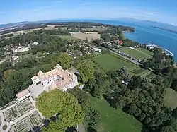 Die Schweiz hat aufgrund ihrer topographischen Struktur und vor allem aufgrund der Vergletscherung während der Eiszeiten rund 1500 Seen,[30] ein Grossteil davon sind kleinere Bergseen. Insgesamt sind ungefähr vier Prozent der Oberfläche der Schweiz von Seen bedeckt, diese Summe wird aber hauptsächlich von den grössten Seen der Schweiz bestimmt: Der grösste See der Schweiz ist der Genfersee (580,03 Quadratkilometer) an der französischen Grenze. Er liegt zu knapp 60 Prozent auf Schweizer Boden. Der an Deutschland und Österreich grenzende Bodensee ist mit 536,00 Quadratkilometern etwas kleiner (23,73 Prozent der Uferlänge auf Schweizer Boden). Der Lago Maggiore an der italienischen Grenze (19,28 Prozent auf Schweizer Territorium) bildet mit 193 m ü. M. den tiefsten Punkt der Schweiz. Die grössten vollständig in der Schweiz liegenden Seen sind der Neuenburgersee (215,20 Quadratkilometer), der Vierwaldstättersee (113,72 Quadratkilometer) und der Zürichsee (88,17 Quadratkilometer).[31][32]