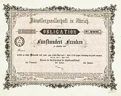 Blankette einer Obligation der Künstlergesellschaft in Zürich vom 1. Mai 1858