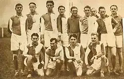 Stehend von links nach rechts: Heck (Ersatz), Ernst Hufschmid, Werner Meyer, Olloz, Morf, Guldimann, Max Streib(C), Riederer (Oberturner), Schneider (Spielchef und Trainer).
