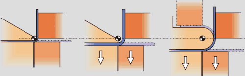 - Bleche mit empfindlicher Oberfläche können gebogen werden, da es wenig Relativbewegung zwischen Werkzeug und Blechoberfläche gibt (Edelstahl, beschichtetes Blech)