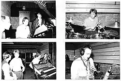 ![]() Schwoißfuaß in der Urbesetzung von 1979 (v. l. n. r.): „Didi“ Holzner (unten links), André Schnisa (oben links), „Sulla“ Bratke, „Riedel“ Diegel, „Alex“ Köberlein | |