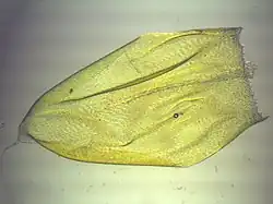 Die Blätter sind breit eiförmig und vorne mit einer kurzen Spitze. Die ungefähr bis zur Blattmitte reichende Blattrippe ist gegabelt oder von Grunde an doppelt. Die Blätter sind deutlich hohl und liegen entlang des Stämmchens so übereinander, dass unter ihnen ein abgeschlossener Hohlraum entsteht. Hierdurch wirken die Stämmchen wurmförmig oder geschwollen. Man geht davon aus, dass in diesem Hohlraum durch Kapillarwirkung Wasser entlanggeleitet werden kann.