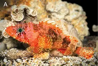 - ↑ Smith, W.L., Everman, E. & Richardson, C. (2018): Phylogeny and Taxonomy of Flatheads, Scorpionfishes, Sea Robins, and Stonefishes (Percomorpha: Scorpaeniformes) and the Evolution of the Lachrymal Saber. Copeia 106(1):94-119. 2018 doi: 10.1643/CG-17-669