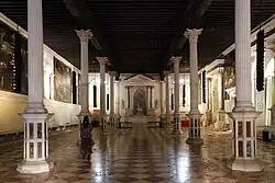 Der große durch zwei Säulenreihen unterteilte dreischiffige Saal im Erdgeschoss umfasst 700 Quadratmeter und diente sowohl als Eingangshalle als auch liturgischen Zwecken, mit seinem Altar mit der von Girolamo Campagna Anfang des 17. Jahrhunderts geschaffenen Statue des heiligen Rochus.
